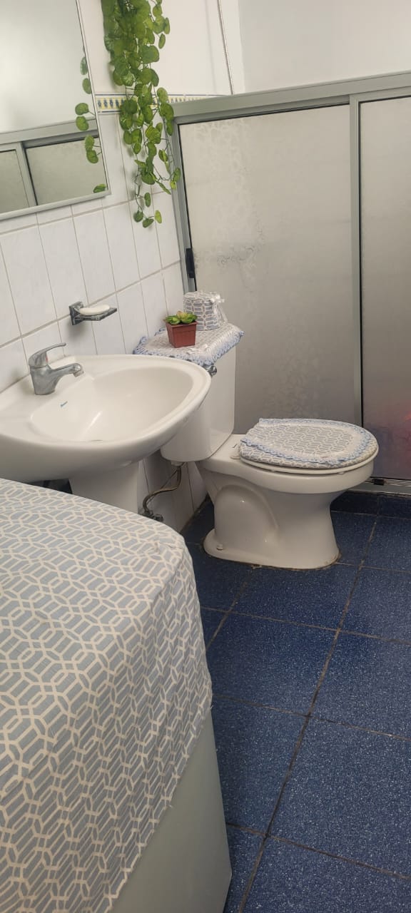 Baño Amplio con piso y muro cerámico más instalación de lavadora.