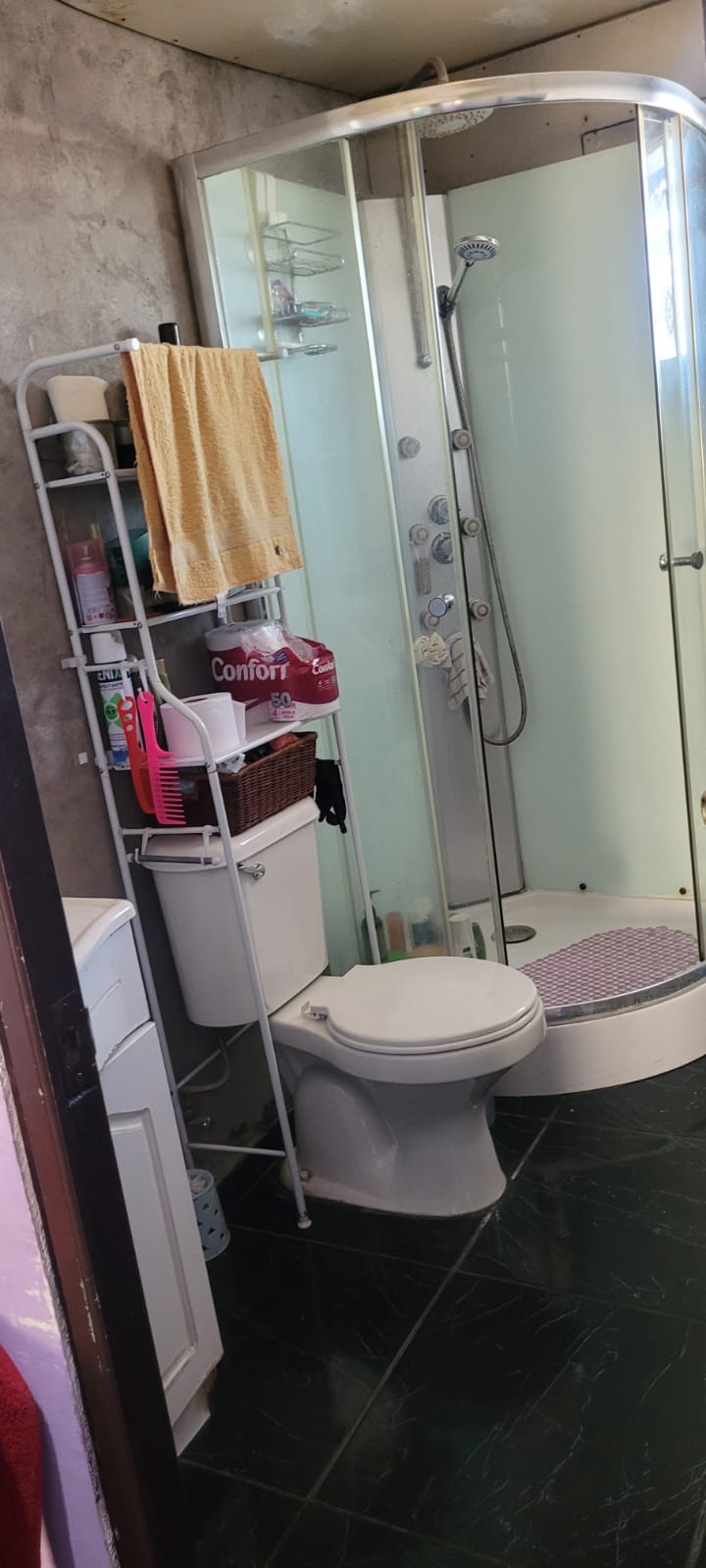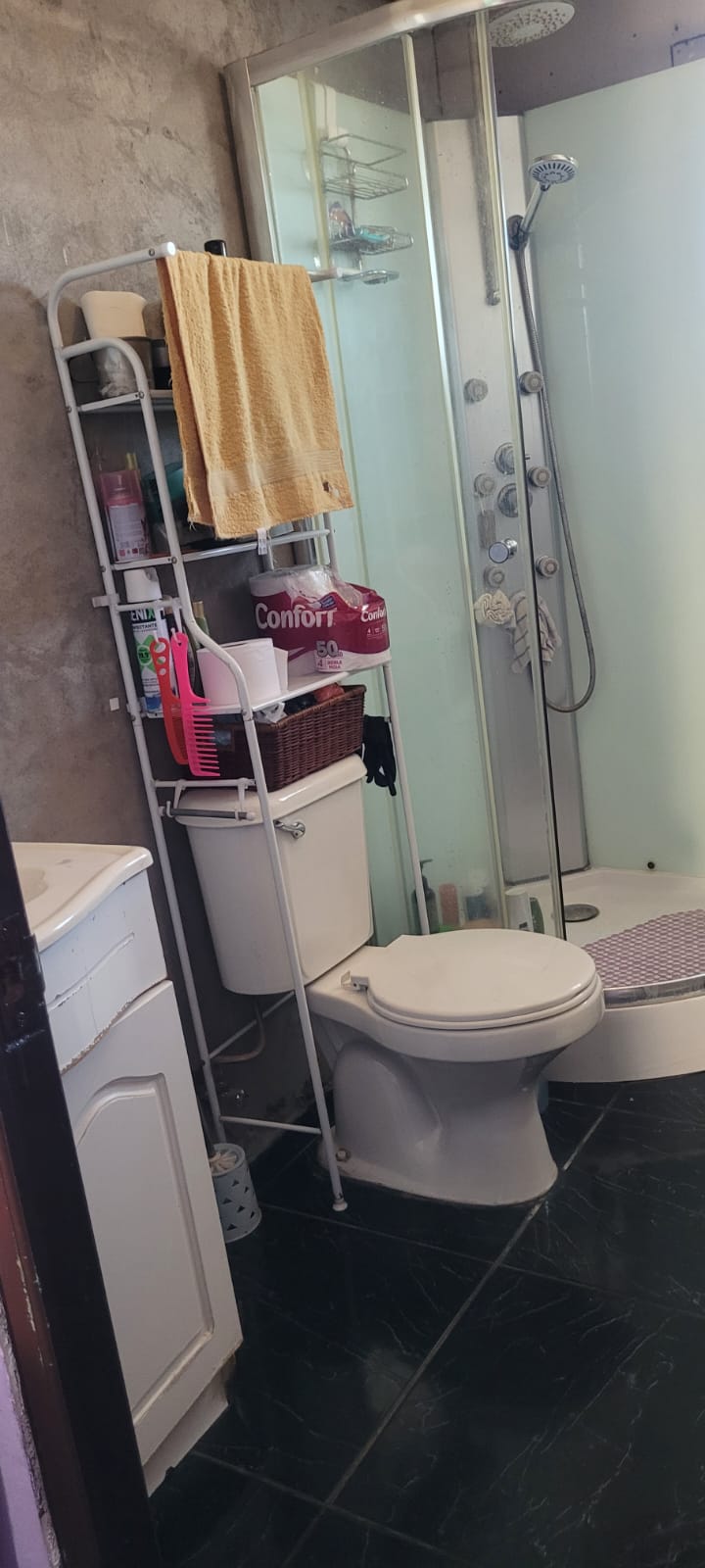 Un baño con piso cerámico.